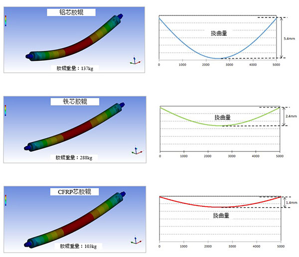 各种铁芯材质胶辊的挠曲量比较